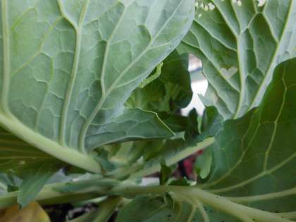 キャベツの葉に虫食いの穴が多くなってきました。小さな幼虫を含めて全部で6匹確認しました。1匹は,もう2回目の脱皮をしているところで,体長も2cmほどになってきました。