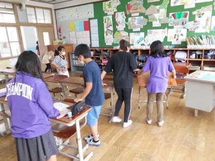 ある日のそうじ時間のことです。教室でそうじをしていると,シーンとしていることに気が付きました。おどろいて子どもたちの姿を見てみると,黙々と一生懸命に自分の担当場所のそうじをしていました。ぞうきんもあっという間に真っ黒になってしまいます。心をこめて一生懸命にそうじをすることができるみなさんは,とってもすばらしいですね。