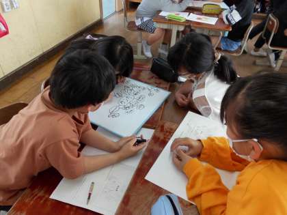 総合的な学習の時間で「わたしとこころ」の学習をしています。今日は,グループごとに『けんか』という言葉からつながる言葉を考えました。『けんか』から暴力・いじめ・暴言・いじりなどの言葉がつながっていったり,嫌なことを言ったりしたりする人の気持ちと,言われたりされたりする人の気持ちを考えたりしていました。
