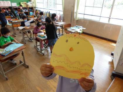 図工科の学習で「たまご」から想像を広げ,世界に1つだけの「ふしぎなたまご」を描きました。描きながら,説明をしてくれる様子がとても生き生きとしていました。できあがったたまごを嬉しそうに見せてくれていました。