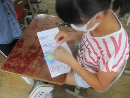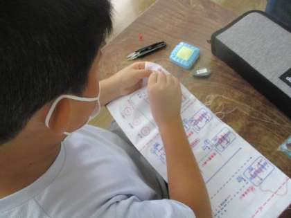 家庭科の「ひと針に 心をこめて」の学習で裁縫を続けています。今回は「玉どめ」に挑戦しました。動画や教師の手本を見たり,友達に教えてもらったりしながら何度も練習していました。「難しい…」と苦戦している人も多かったですが,何度も練習して上達してもらいたいです。