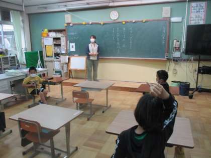 国語で反対の意味の言葉を学習しました。「大きいの反対は?」などと一人ずつ反対の意味の言葉を答え,みんなであっているか確認しました。