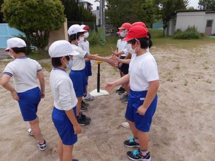 雨の日が続き,なかなかベースボールの授業ができなかった5年生ですが,やっと最後の試合をすることが出来ました。チームで作戦を工夫しながら,試合を楽しんでいました。「もっとやりたかったー!」と学習が終わるのを惜しむ声が聞こえてきました。