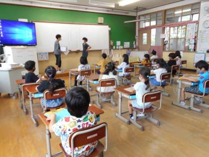 1年生との学校探険。今まで1年生を楽しませるために一生懸命準備してきました。