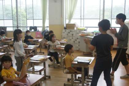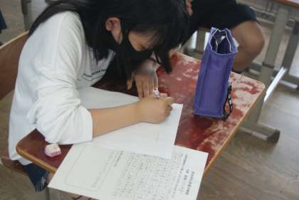 教室に戻ると,1年生がキーワードを書いた紙にコメントを書きました。「楽しかったよ」「また遊ぼうね」など素敵な言葉がたくさんありました。
