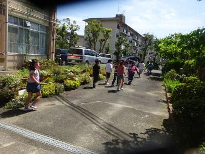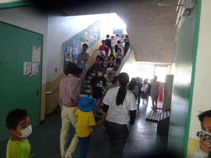 マスクの上からハンカチや手で口を覆い,慌てず静かに