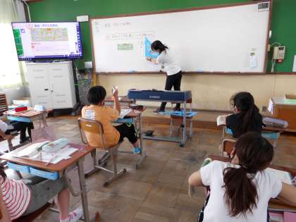 町の道路の図を見ながら,直角に交わる交差点とそうではない角度で交わる交差点とがあり,三角定規の直角のところをあてがって,垂直であるかどうかを確かめました。
