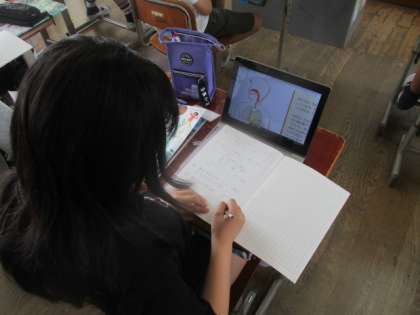 理科の「体のつくりとはたらき」で,前の時間に息をする時に酸素を取り入れ,二酸化炭素を出していることを学習しました。今回は酸素を取り入れた後,どのように全身に運んでいくのかを調べました。インターネットで調べるうちに血液によって運ばれることや心臓が血液を流していることがわかり,実際に心臓の音をきいたり,脈をとったりしてみました。