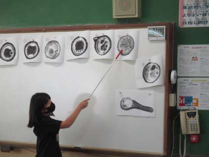前回メダカのたまごを双眼実体顕微鏡で観察しました。そこで,いろいろな状態のたまごがあることに気付きました。それは産まれた日が違うからだと気付き,今回は成長する順番に並べてみることにしました。いろいろな状態のたまごの写真を配り,自分で並び替えてみました。その後,隣の友達と交流しました。最後に全体で確認すると,しっかり理由を考えて予想をしていました。根拠をはっきりさせて自分の考えをもつことができていますね。