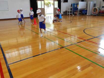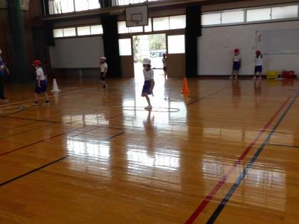 リーダーの跳び方を真似ながら遊びました。グループの中から「おしい。」「すごい。」と友達への優しい言葉がけの様子も見られました。