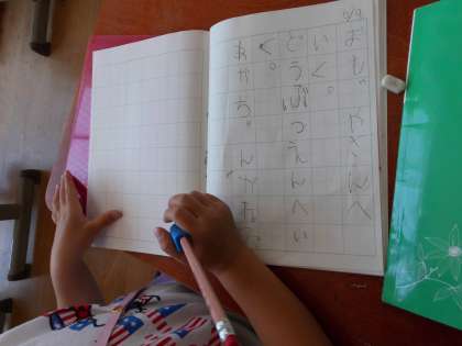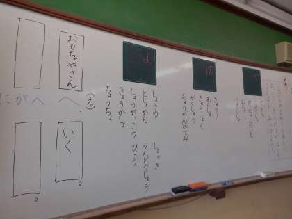 最後には,拗音のある言葉を使った文を考えたり,「○○へ△△」の文を考えたりしました。