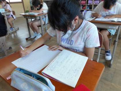 国語「お礼の気持ちを伝えよう」の学習では,お世話になっている方にお手紙を書きました。手紙の型,「初めのあいさつ」「本文」「むすびのあいさつ」「後付け」を意識しながら,気持ちが伝わるように書いていました。