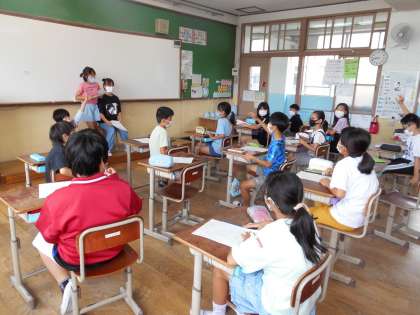 朝,教室に入ると,クラス全員で司会を立てて,話し合いをしていました。よく聞いていると,パーティ係が企画しているお誕生日会で,みんなが楽しく遊ぶことができるように,みんなでルールを決めていこうという話し合いをしていたようです。誰かの意見に流されてしまうのではなく,必ず他の人の意見を聞いたり,意見を言う時には「なぜそう思ったのか。」という理由を付けて説得力をもたせたりして,話し合いを自分たちで進めていました。自分たちのために,自分たちで決めて行動しようとする5年生に,とても感心しました。すばらしいですね!!