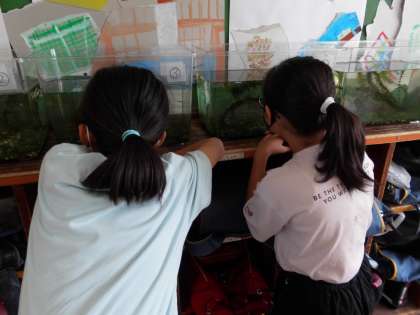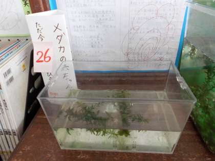 それぞれのグループが頑張って育てているメダカが産んだ卵から,順調に赤ちゃんメダカが誕生し,今,26匹になっています。みんながお世話している「石田メダカ」すくすく成長しています。明日は何匹,生まれているのかな。