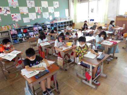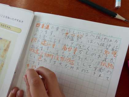 京都駅周辺の様子や,お店が集まっているところの様子,地図記号や方位のことなど,新しく学習したことの中から,大切なところを中心にノートにまとめていく姿が見られました。