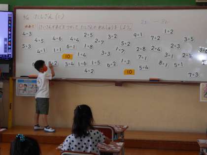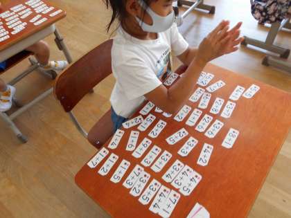10の答えになるカードを見つけたり,答えはどちらが大きい?などのゲームをしました。
