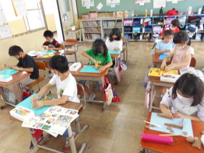 「京都タワーを作る!」「ここはレンガみたいにしてみる!」とイメージしたものを表そうと一生懸命学習に向かうことができました。