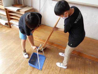 そうじ時間に,「先生,すごいで!来てくだい。」と言われある教室へいってみると,もくもくとそうじをしている姿がありました。「めっちゃ一生懸命にそうじしてはるから,写真撮ってあげてください。」と,近くをそうじしていた友達が伝えてくれました。一生懸命にそうじをすることも,またそんな友達のがんばりを「すごいなぁ。」と称えられる素直な心にも感心しました。