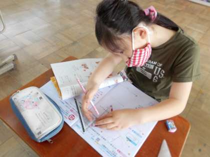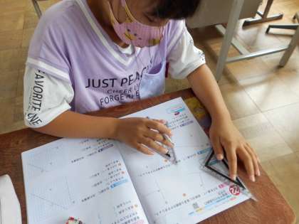 算数「垂直・平行と四角形」では,垂直な直線や平行な直線をかくことに取り組んでいます。初めは,三角定規の使い方に戸惑っていた子どもたちも学習を進めていくうちに正確に作図出来るようになってきました。