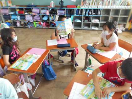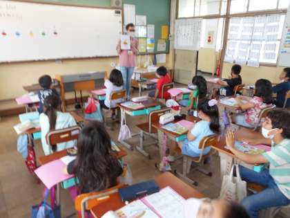 ALTの先生と一緒に色の言い方についてたくさん声に出しながら,学習をしました。
