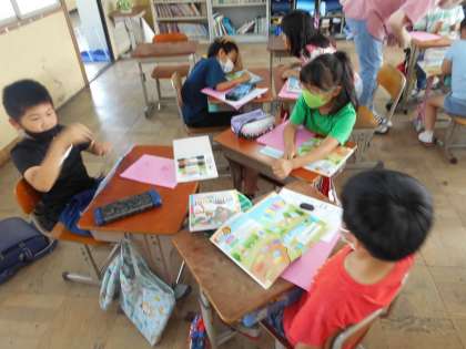 学習の最後には教科書に自分の好きな色を使った虹を描き,その虹に使った色の交流を行いました。