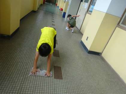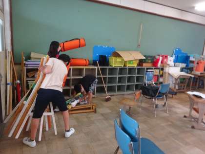 たてわりグループで使う教室の掃除をしました。高学年の児童が低学年の児童に優しく接