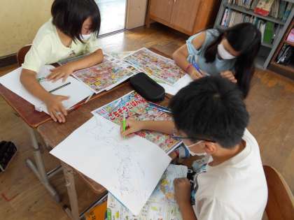 自分たちが口にしている食料が,どこから運ばれてきているのか,チラシをもとに調べました。「外国からたくさん入ってきているなぁ。」「りんごは青森のものが多いのかな。」「水産物は海の近くの都道府県が多いな。」などたくさんのことを発見していました。お家に帰ってからも産地調べをした人がたくさんいたようです。