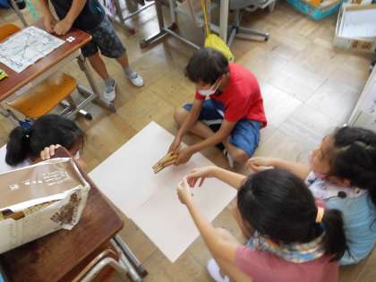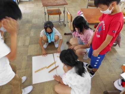 木の棒をサイコロの代わりとして投げるのですが,かわいた気もちのよい木の音が教室中に鳴り響いていました。