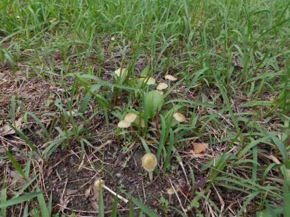 「先生,こんな所にきのこが生えてきてる。」