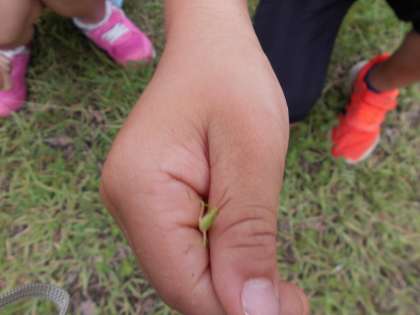 「バッタをつかまえたよ。」