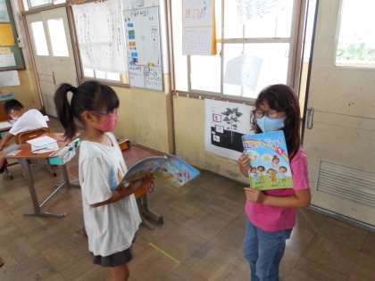 Do you like ・・・?食べ物や色について,好きなものを尋ねます。Yes. I do. No. I don't.野菜やおやつなどの食べ物と10色の色を選んで,好きな物カードを作り,相手と尋ね合います。Do you like green Ice cream? No. I don't. アイスクリームは好きだけど,緑色のアイスならいやだなあ。などの会話を楽しんでいました。
