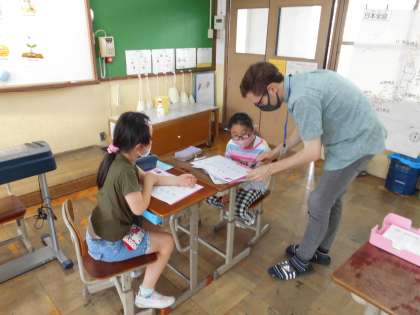ALTのアンドリュー先生と「好きな曜日を伝え合おう。」という学習をしました。月曜日から日曜日に何をするか書いたカードを見て,What day do you ・・・?それぞれ,サッカーをしたり水泳をしたりとカードに書き込み,二人組になって尋ね合いました。