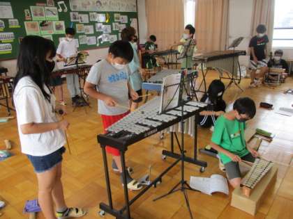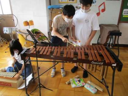 今回は「ラバーズ コンチェルト」でかざりの旋律にも挑戦しました。主旋律は木琴・鉄琴で,かざりの旋律はKOROGIという小さな鉄琴で演奏しました。音に重なりができてきて合奏らしくなってきました。