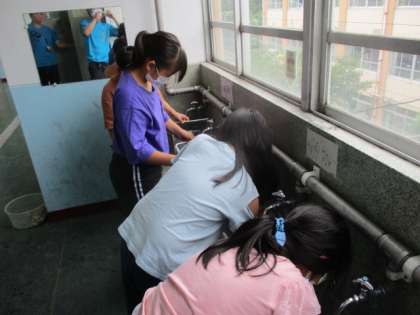 理科でメダカを育ててきましたが,教室は暑くなりすぎるので,元の理科室前にメダカを返すことになりました。「今まで飼っていた水槽を洗うのを手伝ってくれる人?」と言うと放課後にも関わらず,率先して手伝ってくれました。きれいになりました。