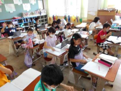 文章の組み立てを意識して,どのように調べた仕事のくふうをまとめていくとよいかを考えながら,活動を進めています。
