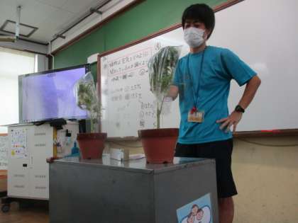 この結果から,植物は「動物と同じように呼吸していること」と「二酸化炭素を取り入れて酸素を出していること」がわかりました。