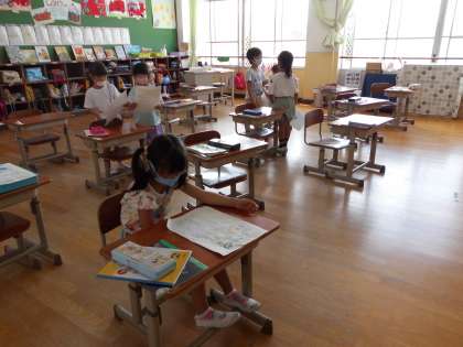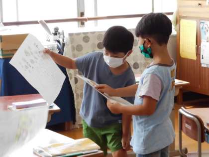 その後,友達と書いた絵日記を見せ合い,交流しました。