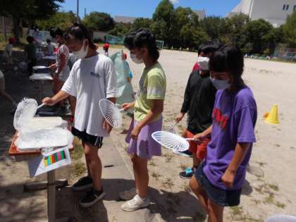 中間休みに,くすのき学級のシャボン玉屋さんに招待してもらいました。「見て見て〜!」とお互いにできたシャボン玉を見せ合いながら楽しみました。くすのき学級のみなさん,ありがとうございました!