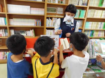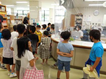生活科の学習で,醍醐図書館の見学に行きました。館内を案内してもらった後,実際に図書館で本を選び,借りました。最後に,質問をしました。どれだけの人が働いているのか,何冊の本があるのか,どれだけの人が利用しているのか,などくわしく教えてもらいました。本の配置(分類)は学校図書館と同じでしたね。