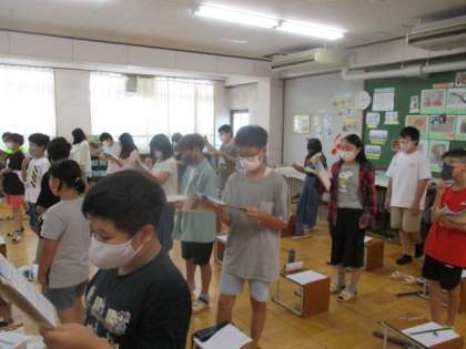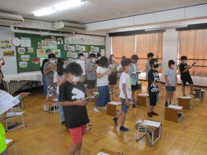 今回の音楽では「われは海の子」を歌いました。まずは歌詞の意味を知り,音階やリズムを確認しました。そしてみんなで合わせて歌いました。初めはうまく歌えませんでしたが,繰り返すうちにうまくなっていきました。