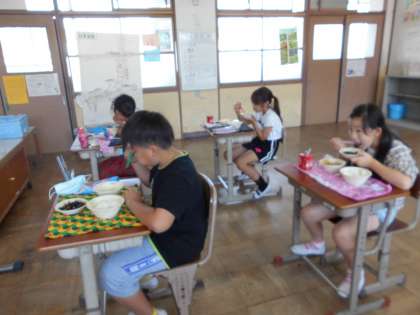 1学期最後の給食は「鶏肉と野菜の煮つけ,ひじき豆,牛乳,ごはん」でした。「じゃがいもがほくほくで美味しいな。」「ひじきがいっぱいでうれしい。」などと言いながら,1学期最後の給食をかみしめていただきました。毎日おいしい給食をありがとうございます!