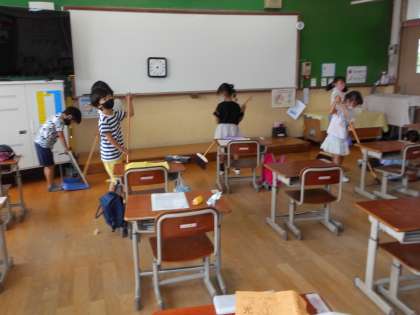 サマースクールが終わるので,最後はみんなで掃除をして終わりました。