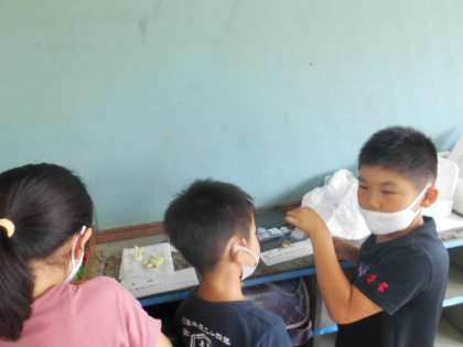 子どもたちが夏休みの宿題で制作した自由課題を教室に掲示しました。