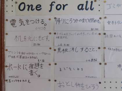 みんなのために何ができるかを考えて,一人一人が毎日できることを考えました。よりよいクラスを目指して,また継続する力をつけるためにもこれから取り組んでいきます。2学期の成長が楽しみです。