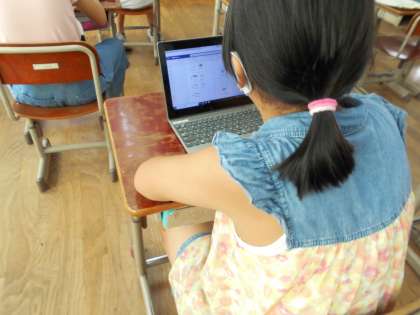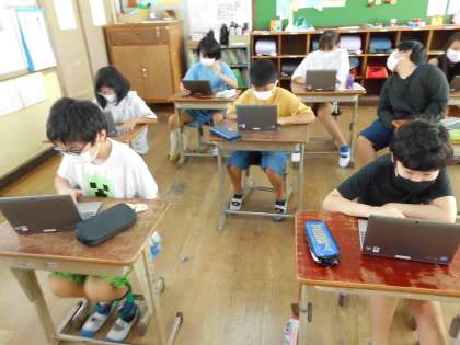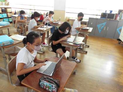 外国語で,自分たちでオリジナル時間割を作って紹介する学習をしています。自分が好きなことをより充実させるためには,どんな時間割にしたらいいのかと考えてグループで1枚の時間割を作り,それをもとに紹介します。今回は,Teamsを使って時間割をグループで共有しながら作成し,グループの中で紹介しました。
