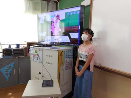 夏休み中に頑張って取り組んだ作品についての発表会を行いました。一人一人が自分の作品の見どころをについて,思いを込めて紹介していました。聞いている人たちも,「すごい!!」「どうなってるの?」と興味津々に聞いていました。