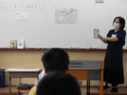 一つの本の話を聞いて,イメージを膨らませて,それを一枚の絵に仕上げていくという学習です。