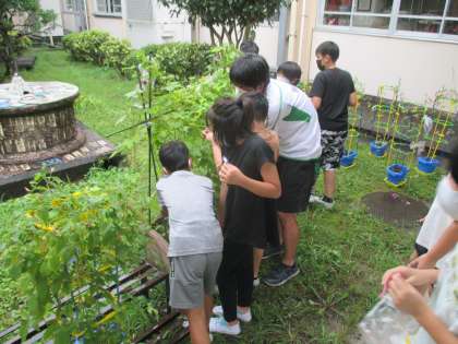 「受粉するとその後どうなるのか」を実験するために,前回つぼみの中のおしべを取り除き,受粉できないように準備をしました。
