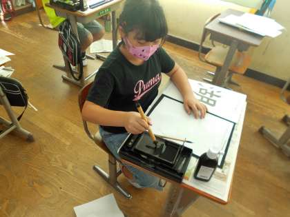 書写の学習では,3つの部分のバランスに気を付けながら,毛筆で「湖」という漢字を書きました。集中して取り組むことが出来ました。