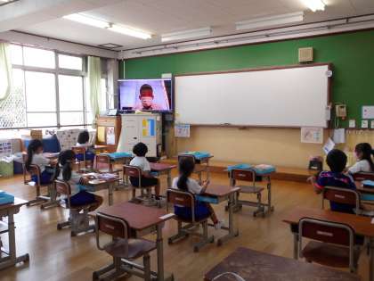 対面ではありませんでしたが,校長先生が映っているテレビの方をしっかり見て話が聞けました。